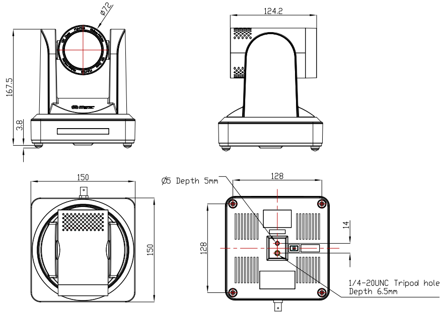 - 超級靜音云臺:采用高精度步進電機以及精密電機驅動控制器,確保云臺低速運行平穩,并且無噪聲。
